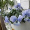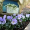 玄関前に製作しました孔子飾りの花台に、ビオラ・フォーシーズンズのブルーウィズイエローを飾ってみました。
