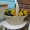小さな庭のビオラをブリキのウォールプランターから鉢替えしました。
